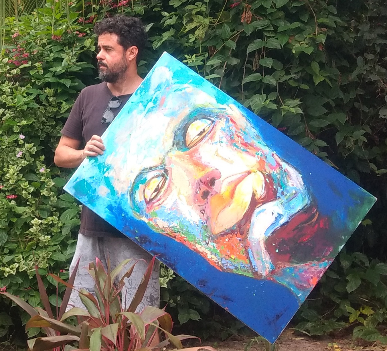 Nascido no Vale do Ribeira em 1979, muito cedo teve formação em artes plásticas e teatro. Durante a juventude imergiu em performances manifestos de rádio livre e criações audiovisuais. Atualmente expressa sua poética no campo das artes visuais, pintura, linogravura, monotipia, litografia e mural.